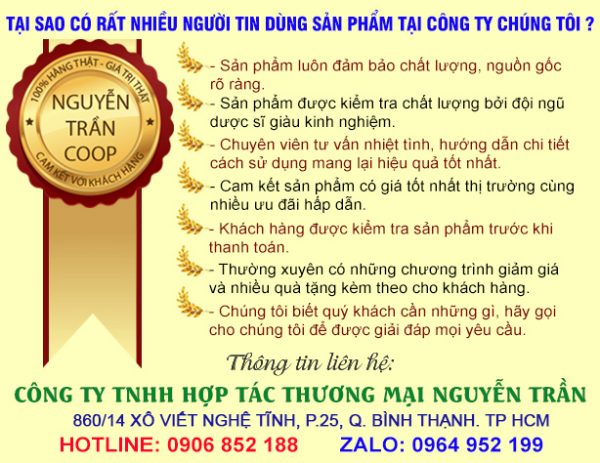 Công ty Nguyễn Trần là nơi có nhiều năm kinh nghiệm trong lĩnh vực nuôi trồng, cung cấp các sản phẩm phẩm từ Sâm cũng như cây thảo dược như cây An Xoa, cây Xạ Đen và rất nhiều sản phẩm hỗ trợ sức khỏe đa dạng khác. Để mua hàng, các bạn vui lòng liên hệ với chúng tôi để được tư vấn hơn.